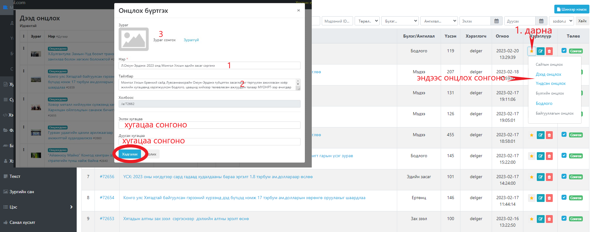 3. Мэдээний онцлоход хугацааг автоматаар тохируулах