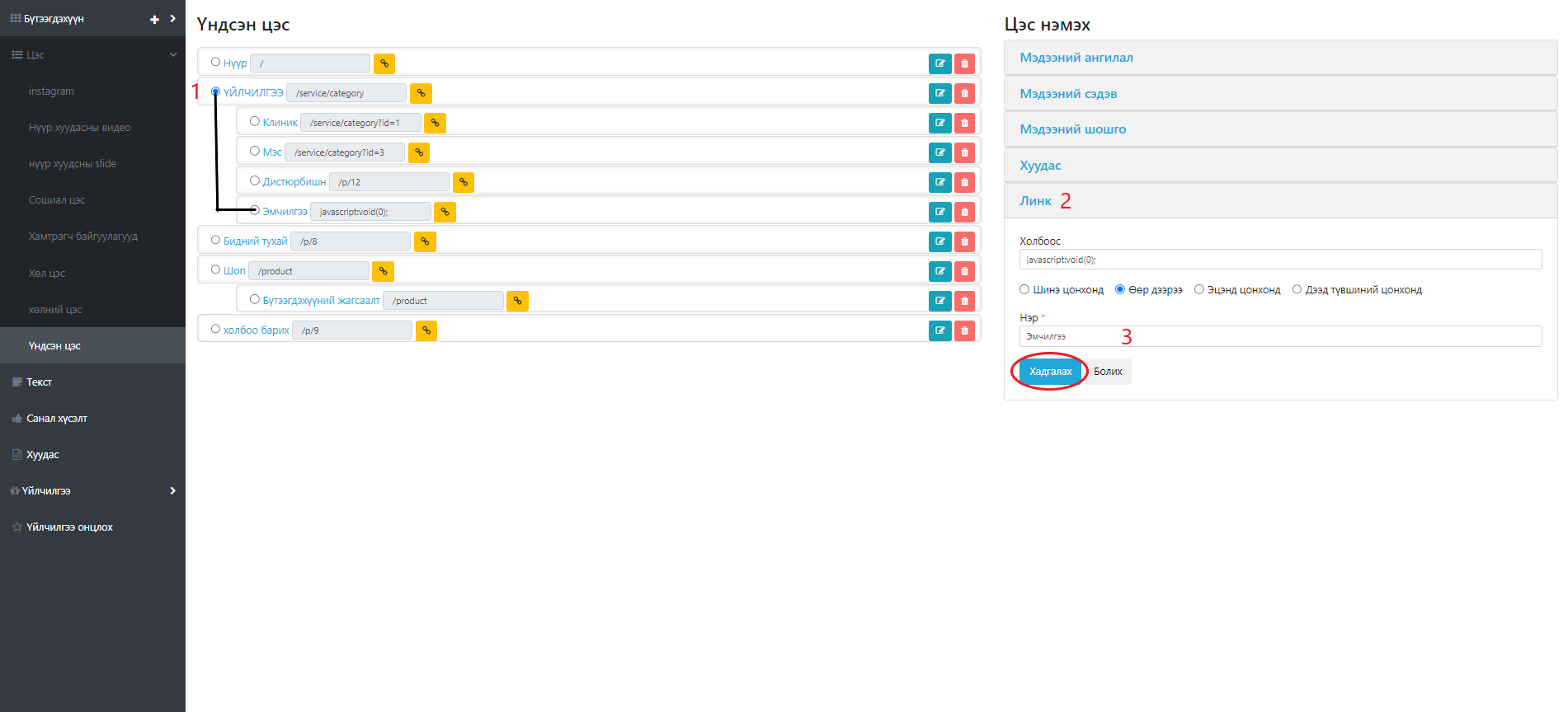 Цэс шинээр нэмэх