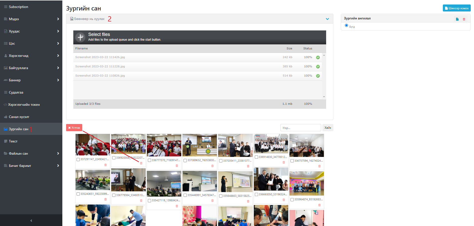 АЛХАМ-1 Зургийн санд зураг олноор оруулах, устгах