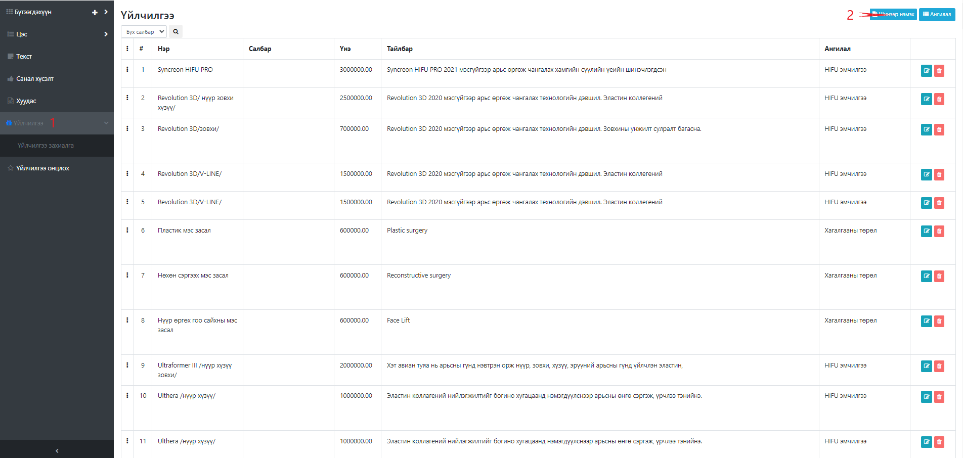 АЛХАМ-1 Үйлчилгээ шинээр нэмэх