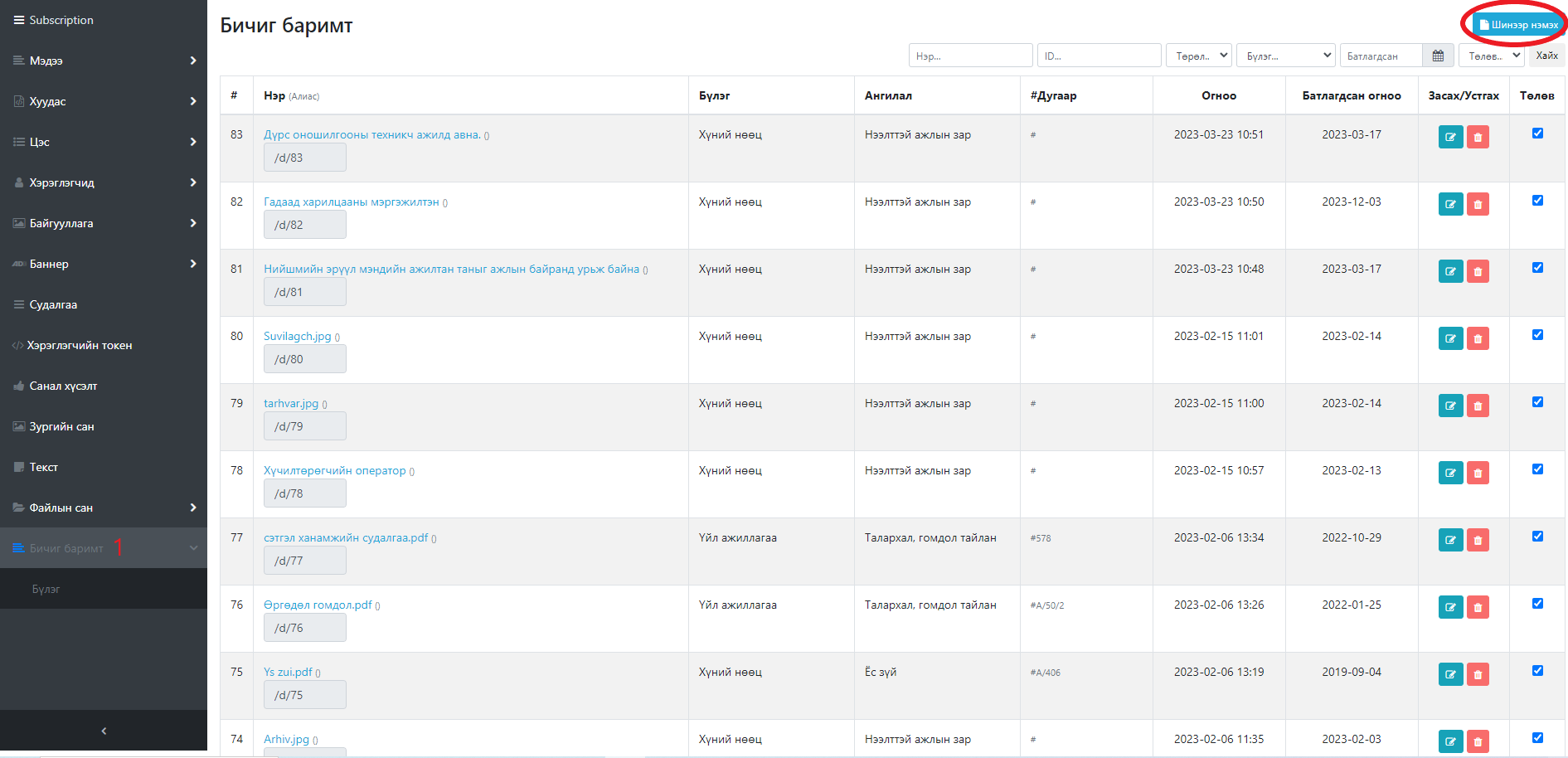 Бичиг баримт шинээр нэмэх